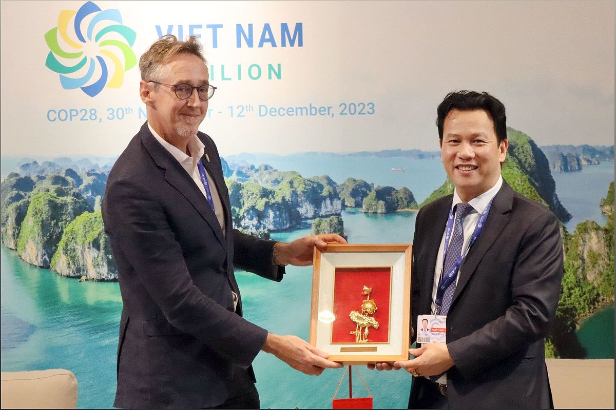 Trong khuôn khổ Hội nghị COP28 tại Dubai, Bộ trưởng Đặng Quốc Khánh đã tiếp và làm việc với Tổng Giám đốc SNV, ông Simon O'Conell. Hai bên đã thống nhất hợp tác trong việc thích ứng với biến đổi khí hậu dựa trên các giải pháp tự nhiên.